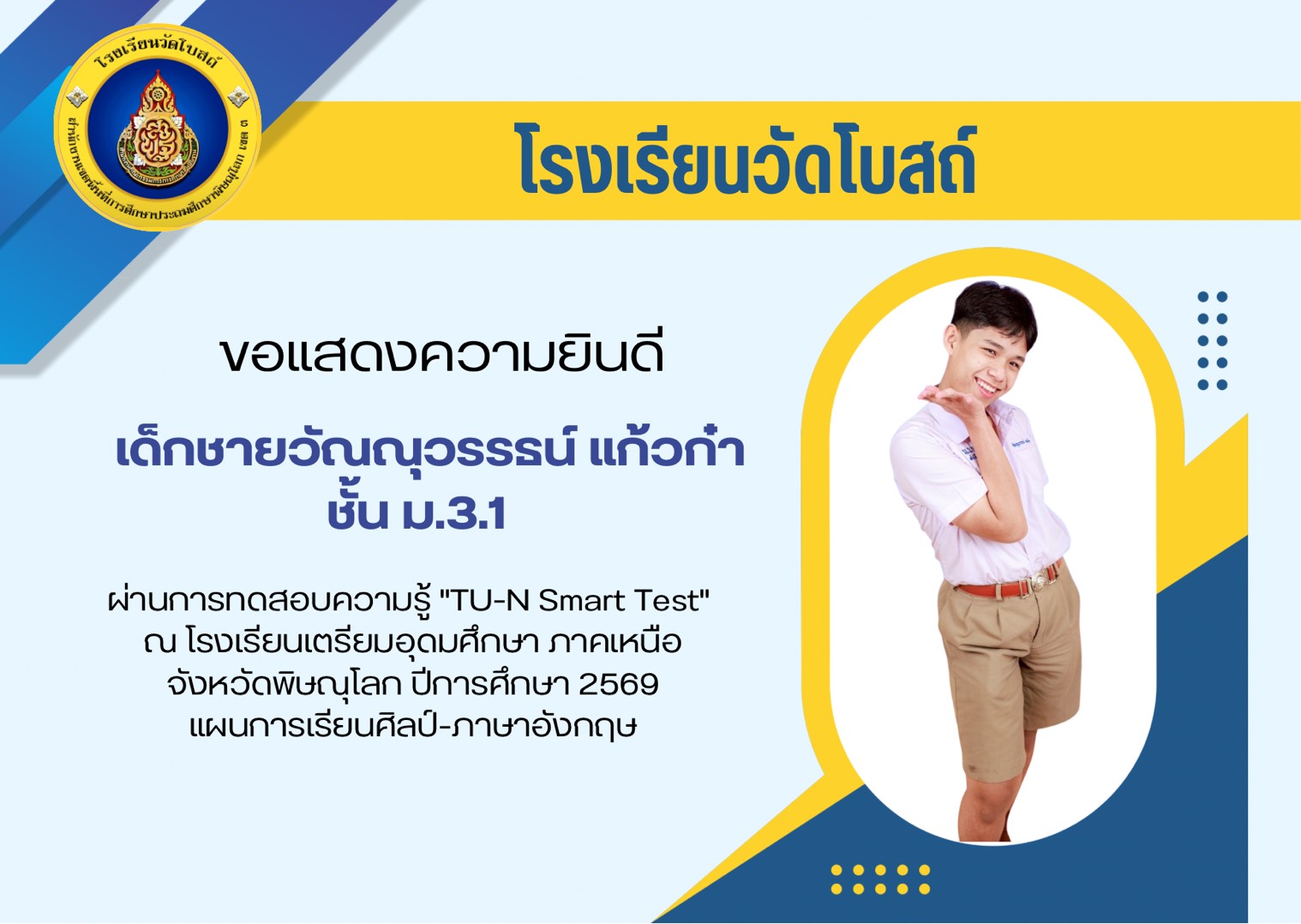 ความสำเร็จในครั้งนี้เป็นเพียงจุดเริ่มต้นของก้าวใหม่ที่สำคัญ โรงเรียนขออวยพรให้นักเรียนทุกคนรักษาความตั้งใจ หมั่นแสวงหาความรู้ และเติบโตไปเป็นอนาคตที่เข้มแข็งของชาติต่อไป